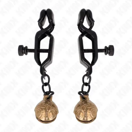 Kink – pinzas para pezones planas negro con cascabel 7 cm