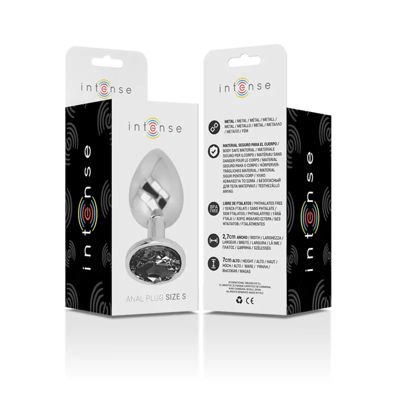 Sumérgete en un mundo de glamuroso placer con el plug anal con joya de diamante de INTENSE. Este plug anal de alta calidad está hecho de metal totalmente libre de Phalatos testado y suave y está adornado con una piedra brillante. Disfruta del lujoso diseño que convierte tus aventuras anales en una experiencia glamorosa. Con su agradable tamaño, su forma firme y manejable, este plug ofrece una estimulación anal elegante y cómoda.Ç
