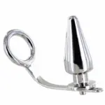 Consiste en un aro de acero quirúrgico del que sale una barra con una bola en el extremo. EL plug es para colocarlo en el ano. Utiliza un poco de lubricante para introducirlo.