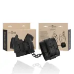 Estas esposas acolchadas combinan cuero sintético con cadenas plateadas para añadir estilo y versatilidad a tus aventuras de bondage. Las esposas tienen forro de felpa y son muy sensuales, además de ser totalmente cómodas y no intimidantes. Sus fuertes hebillas garantizan una sujeción segura en diferentes posiciones, mientras que el mosquetón de liberación rápida garantiza su seguridad. ¡Estar atado nunca ha sido tan excitante!