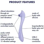 - Estimulación simultánea del clítoris mediante ondas de presión y vibración.