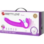 El consolador vibrador sin tirantes Pretty Love te permite jugar sin arnés para una experiencia más fluida. Ya sea que estés planeando una excitación íntima de chica con chica o que quieras invitar a tu hombre a una sesión de pegging estimulante, seguro que los satisfará a ambos.