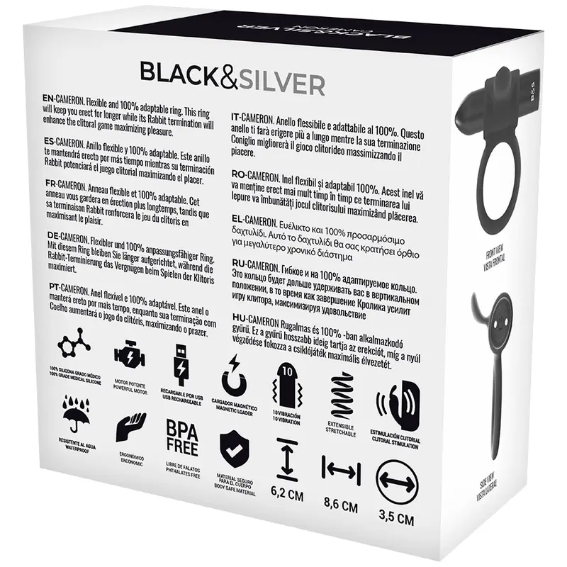 ¡Aquí viene un regalo especialmente azucarado para tu mejor amigo! Esta maravilloso estimulador masculino se disfraza de anillo de pene y quiere endulzar las horas de tu corazón. Con el Black&Silver Ring puedes mejorar adecuadamente tu lanza de placer y darte a ti y a tu amada/o estímulos de hormigueo. Con su superficie negro intenso, suave como la seda, hecha de silicona médica, el Black&Silver lo pone en un éxtasis sensual tan pronto como se lo pone. El anillo se estira agradablemente y, por lo tanto, se adapta a todos los tamaños, solo para acomodarse y dar placer a su pene.