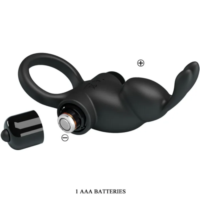 Pretty love – anillo vibrador + estimulador rabbit clítoris 10 vibraciones negro