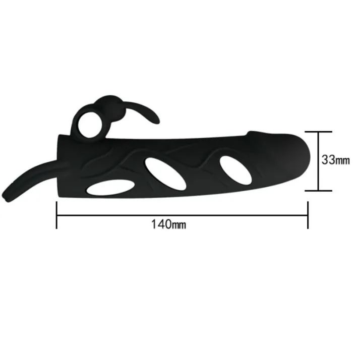 Porque el tamaño si importa, ahora Pretty Love trae esta funda de silicona para que puedas alcanzar hasta los 15.2 cm. Está hecho con silicona de primera calidad, resistente al agua para que puedas usarla en la ducha o spa, con anillo de sujeción en los testículos e incorpora una bala vibradora y rabbit con lo que aumentareis el placer en pareja. Además de ganar unos centímetros en longitud y grosor de más, es perfecto para personas con eyaculación precoz o disfunción erectil para poder seguir disfrutando.