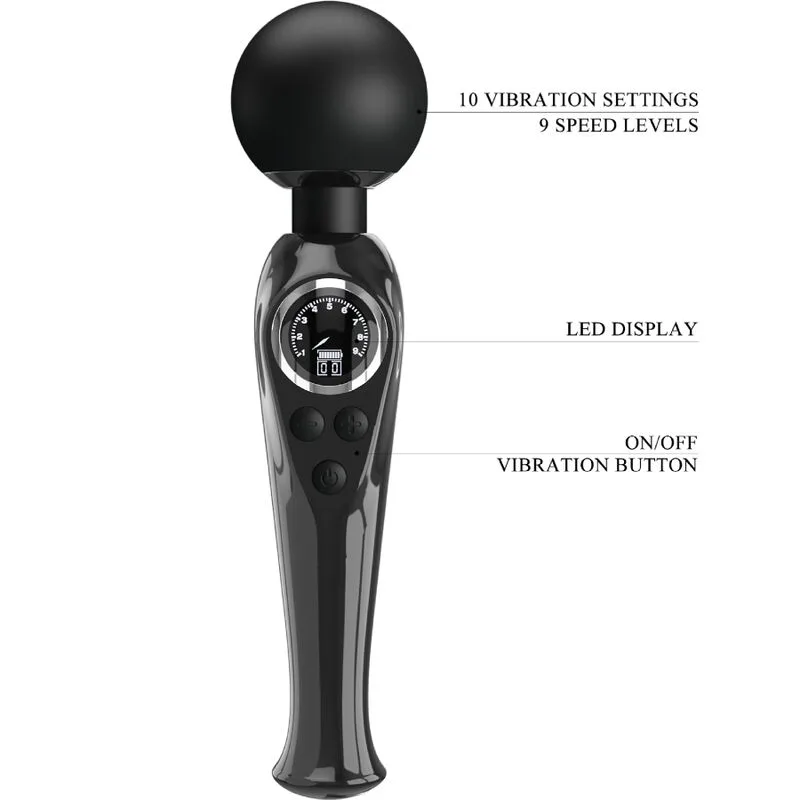 Esta sofisticada varita vibratoria cuenta con un motor excepcionalmente potente en su amplio cabezal, que tiene un cuello flexible para ayudarte a seleccionar 10 modos de vibración y 9 niveles de velocidad donde más los desees. El cuerpo bulboso es compacto para un agarre cómodo y lo suficientemente liviano. Tiene una pantalla LCD digital fácil de usar que muestra la configuración y el nivel de la batería. Es el complemento perfecto para el dormitorio de las parejas que disfrutan de un contacto vibratorio intenso, sensual y pleno.