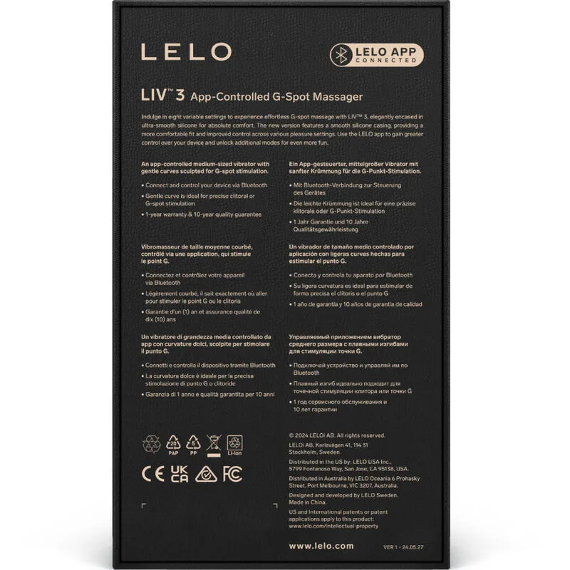 Elegantemente revestido de silicona ultra suave para una comodidad absoluta, LIV™ 3 se adapta perfectamente a todas las anatomías, brindando un fácil acceso a una potente estimulación del punto G. Con ocho configuraciones únicas y una forma rediseñada, este vibrador brinda masajes profundos y precisos para una liberación orgásmica profunda. Conectar su LIV™ 3 a la aplicación LELO a través de Bluetooth desbloquea dos modos adicionales, ofreciendo una experiencia mejorada y personalizable adaptada a sus preferencias.