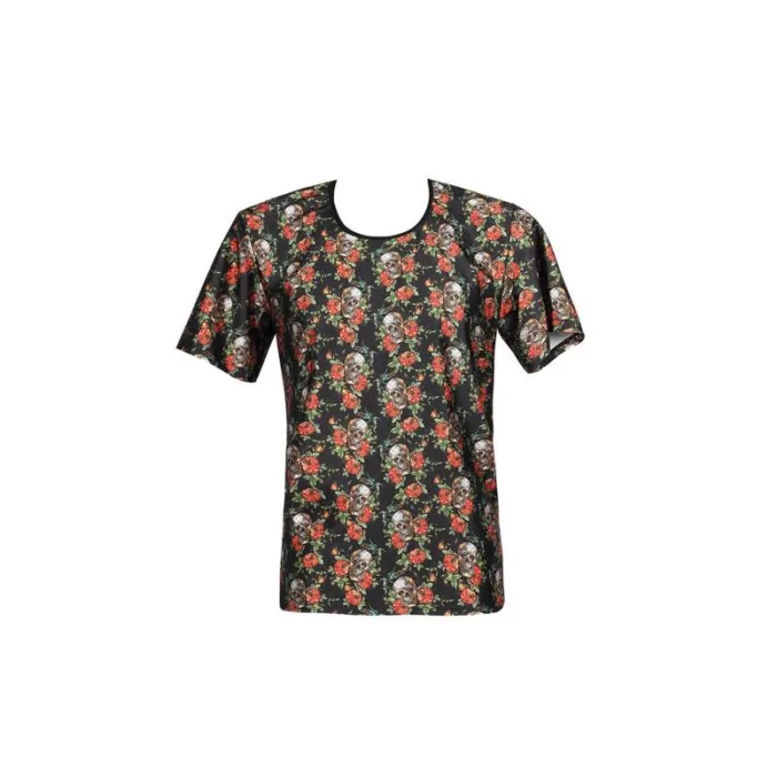 Modal suave de color claro con estampado de rosas y calaveras