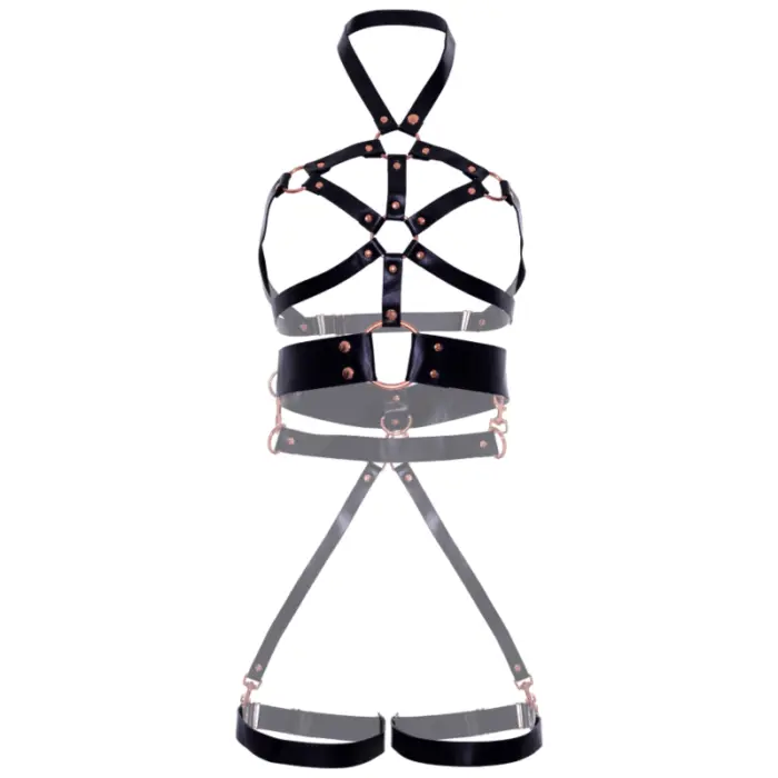 Ríndete a tus deseos con nuestro arnés corporal con tachuelas y junta tórica de cuero vegano. Esta provocativa pieza cuenta con atrevidos pernos con junta tórica, ligas adjuntas y un asa trasera desmontable. Eleva tu sensualidad y dominio, haciendo de cada momento una exploración de placer y poder. Da rienda suelta a tus deseos internos con estilo.