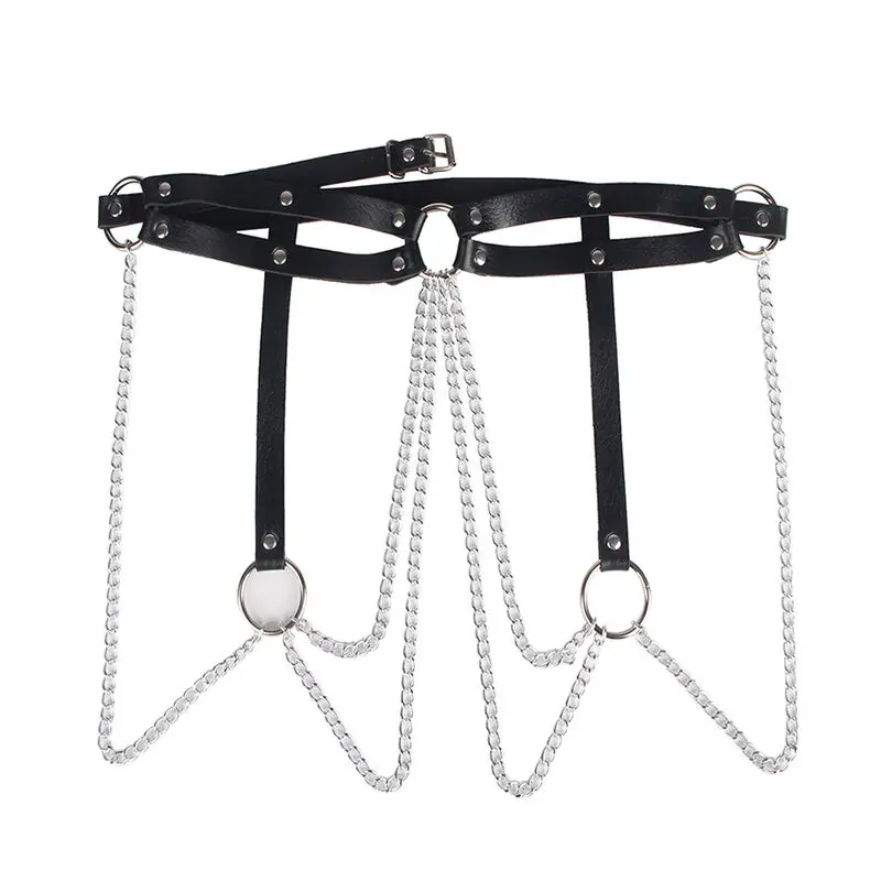 Subblime – cinturon de cadenas anillas cuero negro talla única
