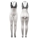 - Estilo: Bodystocking transparente de rejilla con entrepierna abierta.