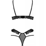 La lencería erótica puede resaltar plenamente la belleza del cuerpo femenino. El modelo presentado es un conjunto Passion, que incluye sujetador con copas abiertas y tanga. Todo está hecho de tul y encaje negro