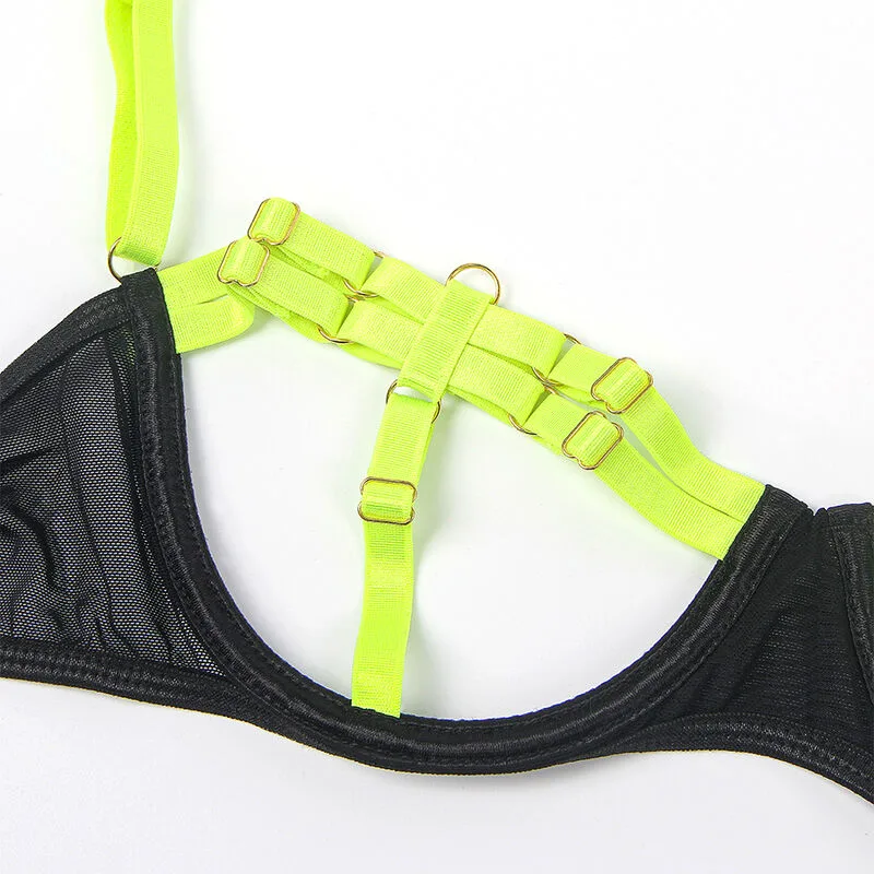 Subblime – 955281 bra set with necklace and leg details fluorescent green l/xl