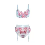 Subblime – 957643 flower embroidered bra and garter belt set pink s/m