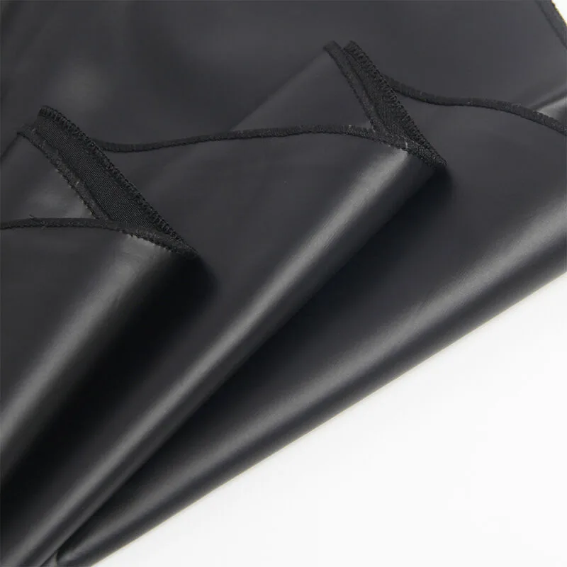 Fabricado con materiales de alta calidad (95% poliéster y 5% elastano/spandex), esta prenda asegura un ajuste cómodo y flexible que se adapta a las curvas de tu cuerpo de manera favorecedora. El acabado en cuero PU aporta un brillo lujoso que realza su carácter provocador, mientras que los tirantes ajustables permiten una personalización perfecta para mayor comodidad.