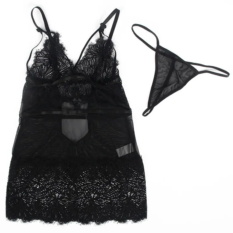 Subblime – babydoll con tirantes ajustables de encaje negro l/xl