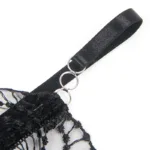 El diseño incorpora detalles de encaje transparente que aportan un toque de delicadeza y refinamiento, mientras que los cortes estratégicos hollow cut realzan la silueta, dejando entrever la piel de forma sutil y seductora. La combinación del encaje con el color negro, clásico y atemporal, añade un aire de misterio y sofisticación que no pasará desapercibido.