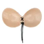 Despeja tu piel de cualquier aceite y crema. Una vez hecho esto, seque la piel con una toalla. Afloje el cierre frontal del sujetador de encaje redondo y retire la película protectora. Después, coloca las tazas en tus pechos. Presione suavemente las tazas adhesivas sobre la piel para suavizar y garantizar un soporte óptimo. Tire hacia abajo en ambos cordones juntos mientras desliza el cierre delantero hacia arriba.