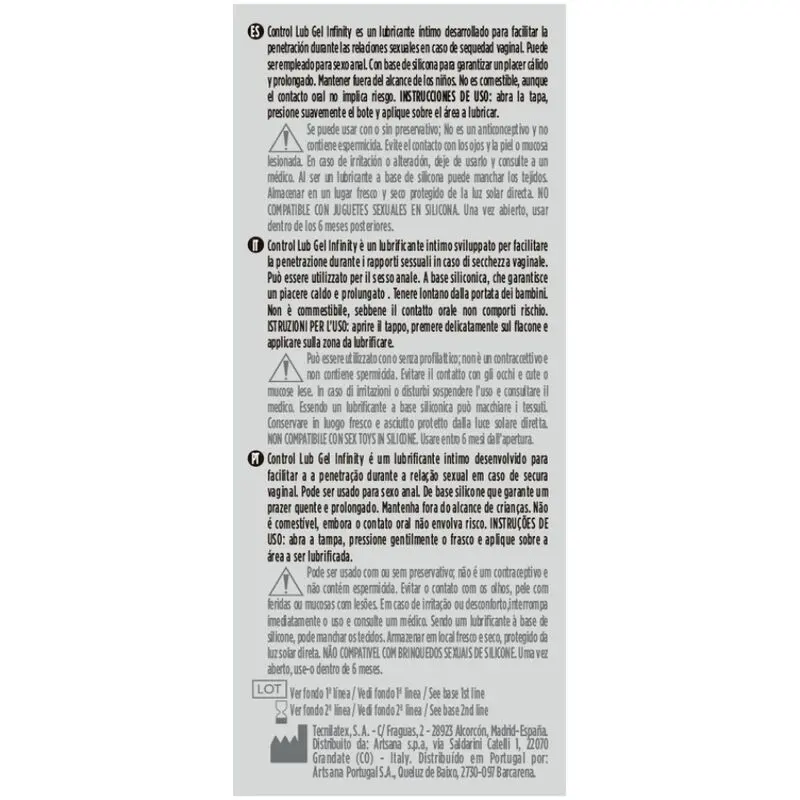 Control Lub Gel Infinity es un lubricante íntimo desarrollado para facilitar la penetración durante las relaciones sexuales en caso de sequedad vaginal . Puede ser empleado para sexo anal