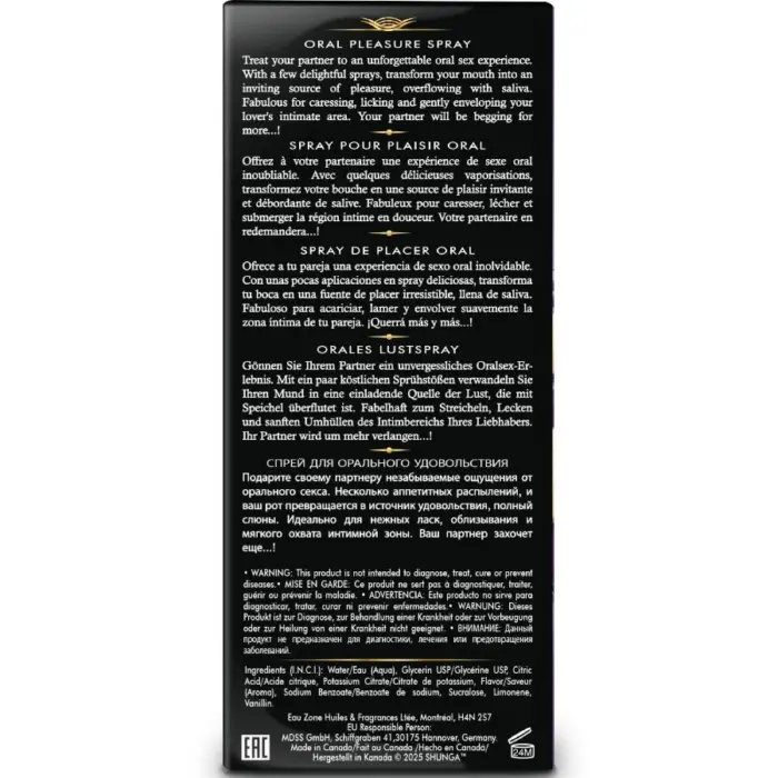 Descubre una nueva forma de disfrutar el juego oral con este spray diseñado para elevar la experiencia a otro nivel. Con solo unas pulverizaciones, tu boca adquiere una textura más suave y húmeda, perfecta para deslizarse con sensualidad por cada rincón íntimo de tu pareja. Sus deliciosos sabores despiertan los sentidos y convierten cada beso, cada lamida y cada roce en un estímulo irresistible que aumenta el deseo de manera natural.