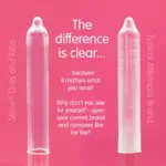 Skins ha combinado nervaduras elevadas ubicadas estratégicamente para brindar mayor placer al usuario junto con puntos deliciosamente delicados para brindar una mayor sensación a la pareja, trabajando en armonía para maximizar el placer y el disfrute de ambos durante esos momentos íntimos. Los condones Skins Dots & Ribs están fabricados con látex natural de primera calidad para una sensación transparente, mejorada y resistente. ¡Tan finos que se sienten como una segunda piel! ¡Nunca entres sin un Skin! Cuando se usan correctamente, los condones Skins Dot & Ribs reducen en gran medida el riesgo de embarazo y de infecciones de transmisión sexual, aunque ningún método anticonceptivo puede brindarle una protección del 100%.